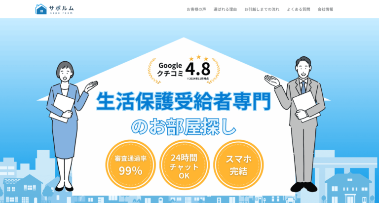 からあげちゃん2025-02-12Trustindex は、レビューの元のソースが Google であることを確認します。 「生活保護、賃貸」で検索をすると1番にこちらの会社が出てきました。夜遅くに問い合わせをしたのですが、すぐにご返信が返って来てとてもスムーズにやり取りが出来ました。審査に落ちてしまった時も必死にお家を探して下さり、頼もしさを感じました。綺麗な物件をご紹介して頂き、凄くびっくりしました。対応もとても親身になって下さり、引越しセンターのご紹介もして頂いたり本当に感謝しております。無事お家が決まり、引越しがとても楽しみです。本当にありがとうございました。 Kira Seed2025-02-11Trustindex は、レビューの元のソースが Google であることを確認します。 繁忙期で希望物件が、中々ない所、親切に対応して頂いて希望物件を探して頂けました。その他、物件に関する相談事なども親身になって対応して頂けました。 澤田晃代2025-02-03Trustindex は、レビューの元のソースが Google であることを確認します。 厳しい条件にも、関わらず、丁寧な対応ありがとうございました。 ひなた2025-01-09Trustindex は、レビューの元のソースが Google であることを確認します。 夜中の0:00にも電話で対応していただけました。また、基本的な連絡は全てLINEで完結するので、日中電話ができなくてもスムーズに物件紹介から契約までしていただき大変助かりました。友人にも勧めたいくらい気持ちのいい対応でした。この度はありがとうございました! 川崎恭介2024-12-20Trustindex は、レビューの元のソースが Google であることを確認します。 武田さんとゆー方が担当してくれたのですが、ものすごく対応もよく、素早い対応していただき、本当に助かりました?♂️めちゃくちゃ言い方でした(*^^*) もちこ2024-11-05Trustindex は、レビューの元のソースが Google であることを確認します。 急な引越しだった事や条件に関する面で本当に申し訳ない気持ちでいっぱいでしたが、ずっと探してくだり寄り添って下さって嬉しかったです。短い期間の中で忙しくて予定を上手く調整して下さったり本当に助かりました。今回、決まって本当に良かったです。初めての一人暮らしでわからない事だらけだったので頼んで良かったなと思いました。本当にありがとうございました。m(_ _)m zukinny2024-08-06Trustindex は、レビューの元のソースが Google であることを確認します。 安心を「当たり前」に、 面倒くさいを「ゼロ」に。 ここまで理念どうりの対応をしてくれる不動産会社は初めてでした。 この物件は事故物件か、ペットの飼育に関する書類は何が必要か…などこういった自分で対応すると思うと「面倒くさい」と思うことも、全てスピーディーに対応してくれました。感謝しかありません。 内野帆乃香2024-06-30Trustindex は、レビューの元のソースが Google であることを確認します。 夜遅くまで親切に対応してくださいました!わからないことだらけで質問も多かったかと思いますが、ご丁寧にありがとうございました! kei 092024-06-30Trustindex は、レビューの元のソースが Google であることを確認します。 対応が丁寧かつスピーディーで、とても助かりました。 引っ越しは不慣れだったので不明点がでる度に質問させていただいたのですが、すべてに確認・回答いただけました。 基本的なやり取りはLINEで、平日仕事終わりの時間でも対応いただけたのでありがたかったです。 内見の際は現地集合なので、駅から物件までの徒歩の感じが確認できたのも個人的によかったです。 仲介手数料も良心価格で初期費用を抑えられたのも助かりました。 また機会がございましたら、ご利用させていただきたいと思います。